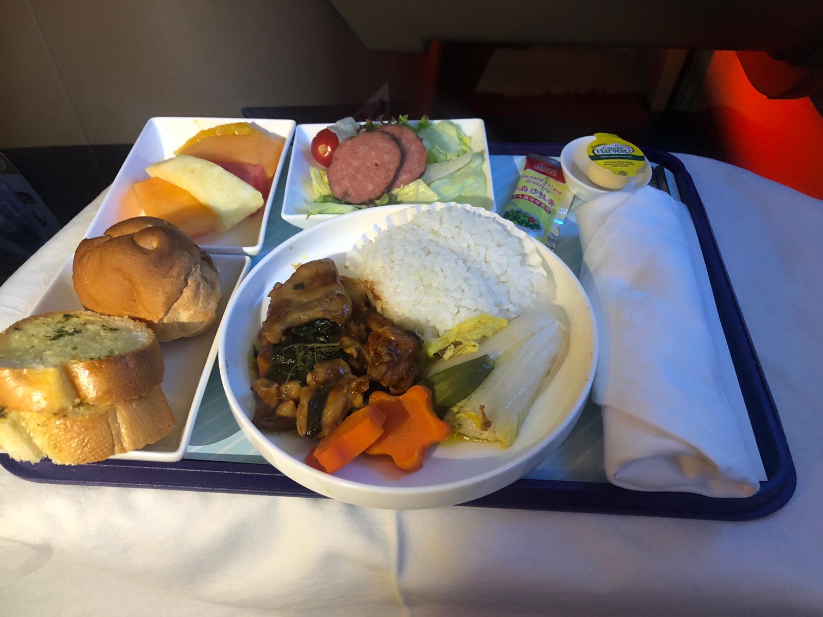 For my dinner, I selected the three cup rooster with rice. The cabin crew requested whether or not I would really like dinner to be served instantly upon takeoff, or later. As our takeoff time was about 2:30pm (i.e. too early for dinner), I requested to be served later. The crew stated the service can be at 5:30pm, as touchdown was barely previous 7pm. I stated okay.
