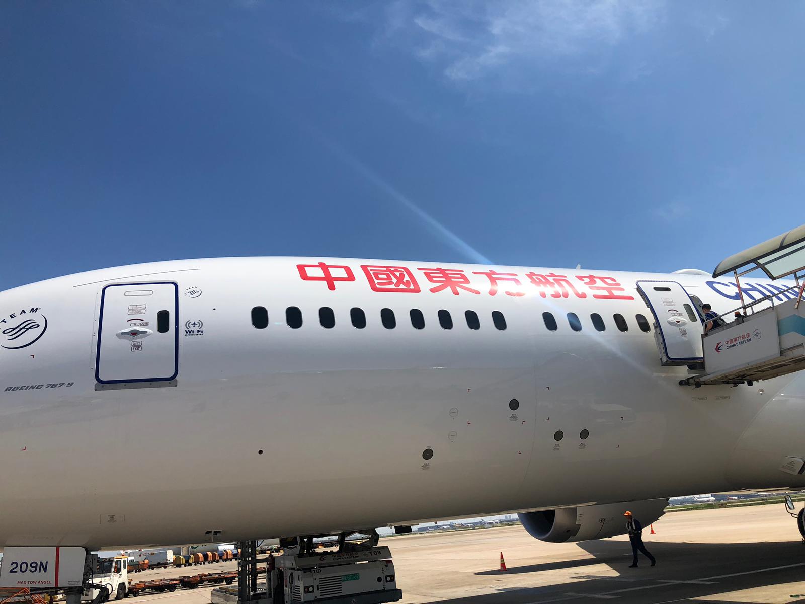 Another have a look at the Boeing 787 Dreamliner. Pretty neat! We weren’t in any rush to board, so we let the opposite passengers board first. The climate was nice, and I took many images of the airplane. See the entrance gear – serial variety of this airplane was B-209N. She was delivered to Shanghai Pudong on thirty first March 2019. Very new!