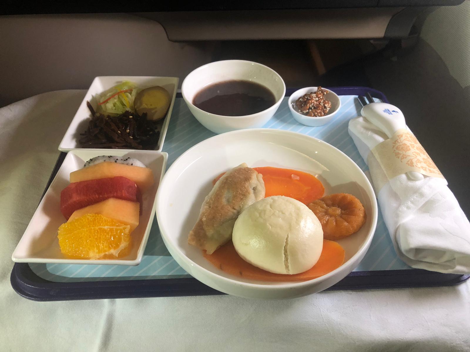 Fortunately, China Eastern did higher than that. We had a selection of Asian or Western model breakfast. I selected Asian, not understanding what it entailed. But no less than we have been first rate an honest breakfast (native Xi’An model), which I fairly loved. Bear in thoughts this can be a 1hr 50min flight, so my expectations weren’t sky excessive. Here is breakfast I loved. Do watch my video in order for you extra particulars of the meals, as I look at the meals tray extra intently.