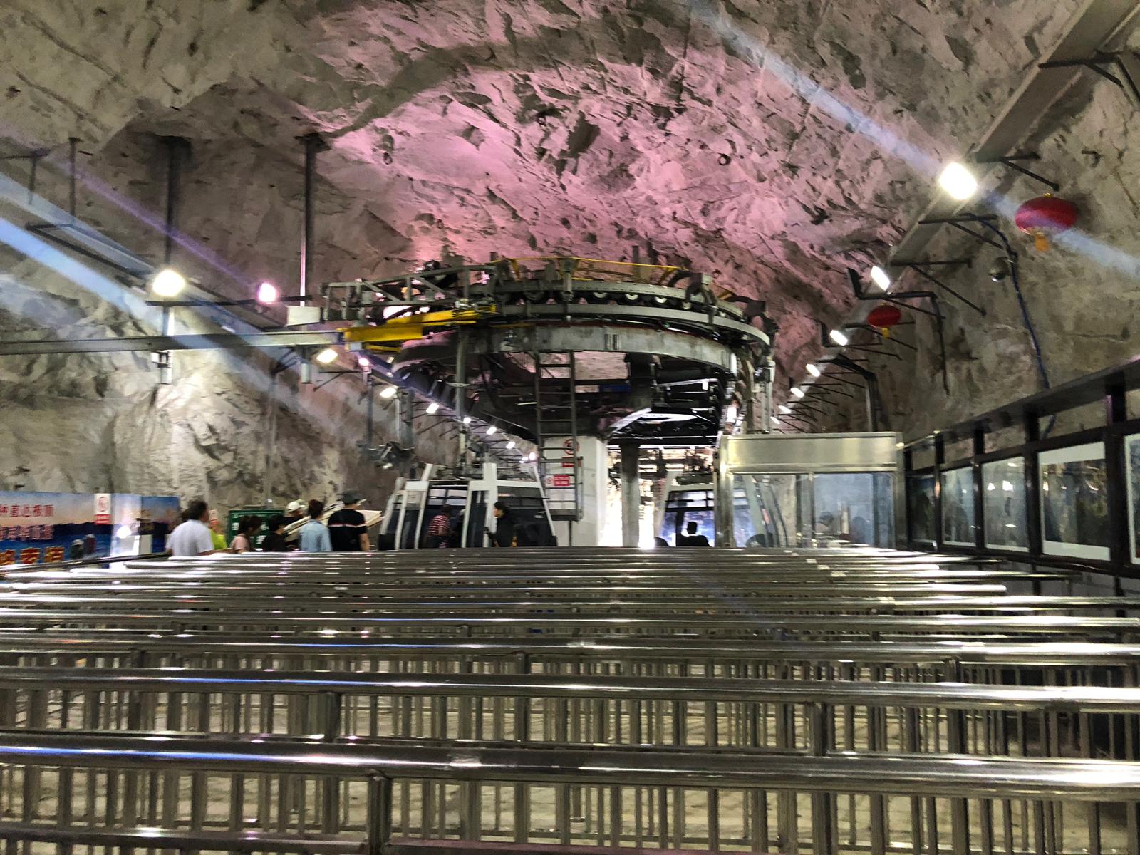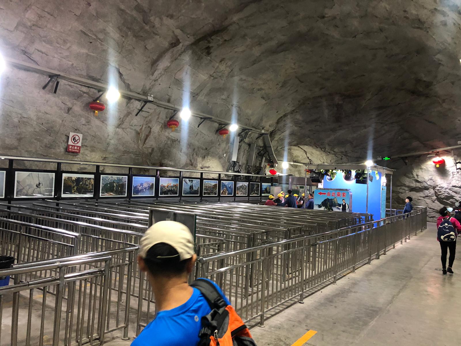 We reached the station, which was actually carved out of the facet of the mountain. Look on the barricades, to deal with the crowds.