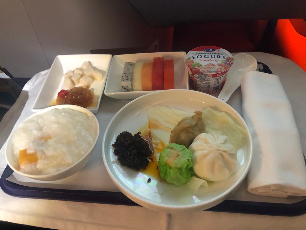The flight was very clean, the expertise was great. We had been served a pre-departure drink (champagne included) in addition to a scorching towel. Before take off, the stewardess got here round to take our meal orders. There wasn’t a menu although positioned on the seat, although the stewardess carried one along with her. I selected the various Dim Sum. She additionally requested whether or not we needed my meal to be served instantly upon take-off, or simply earlier than touchdown. I mentioned to be served straight after take-off. She additionally requested for permission to wake me up for the meal service if I fell asleep! Interesting.
