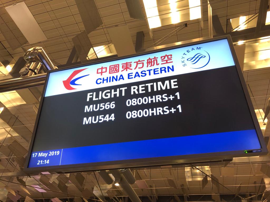 Note that each China Eastern flights to Shanghai MU 566 and MU 544 had been re-timed. Apparently, there was some climate over Guangzhou/Hong Kong space, and the Shanghai aviation authorities had determined that our flights can be re-timed. Oh nicely…..