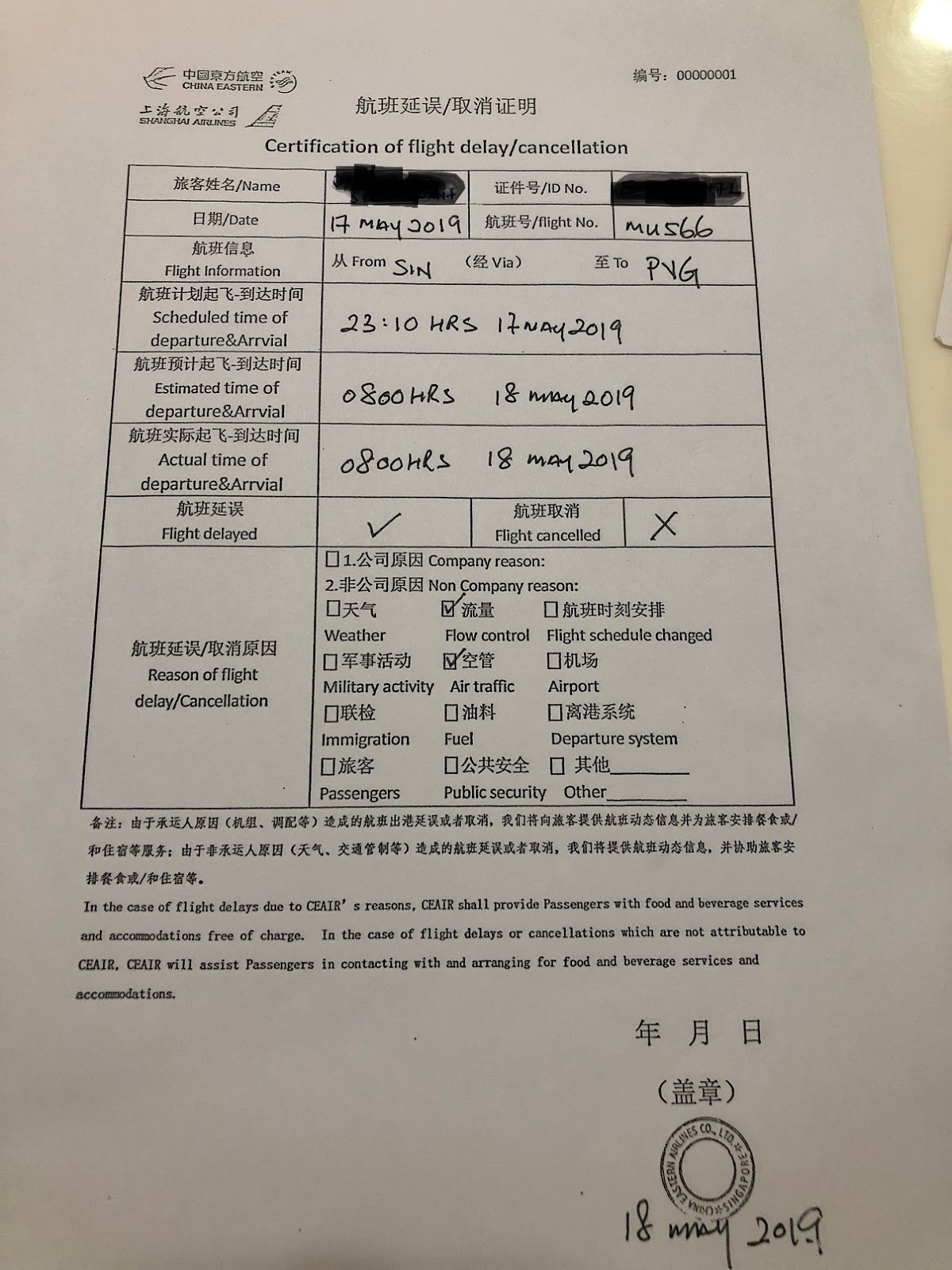Oh sure, earlier than I overlook, we had purchased journey insurance coverage for our journeys and on this case, I imagine we may declare some cash resulting from journey delay. However, as with all insurance coverage claims, you want the correct documentation. For journey delays, you undoubtedly want a letter from the Airline to show that the aircraft was delayed. We had been instructed by the check-in employees to get these letters on the boarding gate. We acquired 2 copies. They seemed like this. You want one letter for each passenger, so we acquired two of such letters.