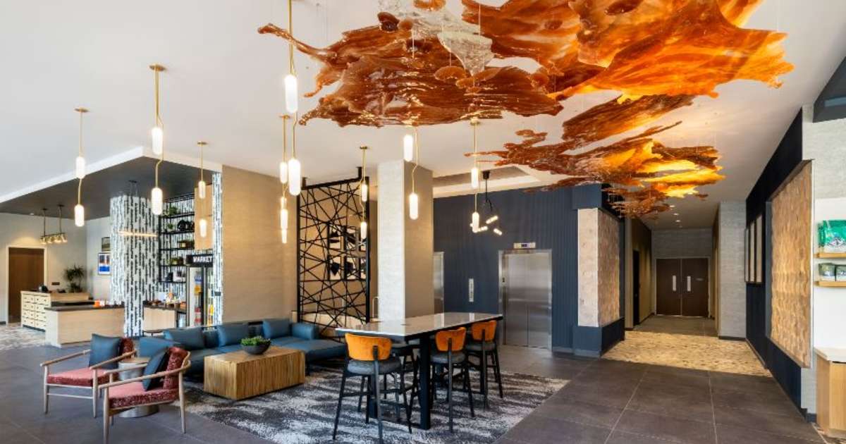 Design components all through the lodge pay homage to Kentucky’s signature spirit. Bourbon-inspired textures and breathtaking paintings appears to be like as if whiskey is pouring into the foyer from the city distilleries close by, making a memorable Look Up second that invitations guests to expertise the current second and discover a brand new perspective.